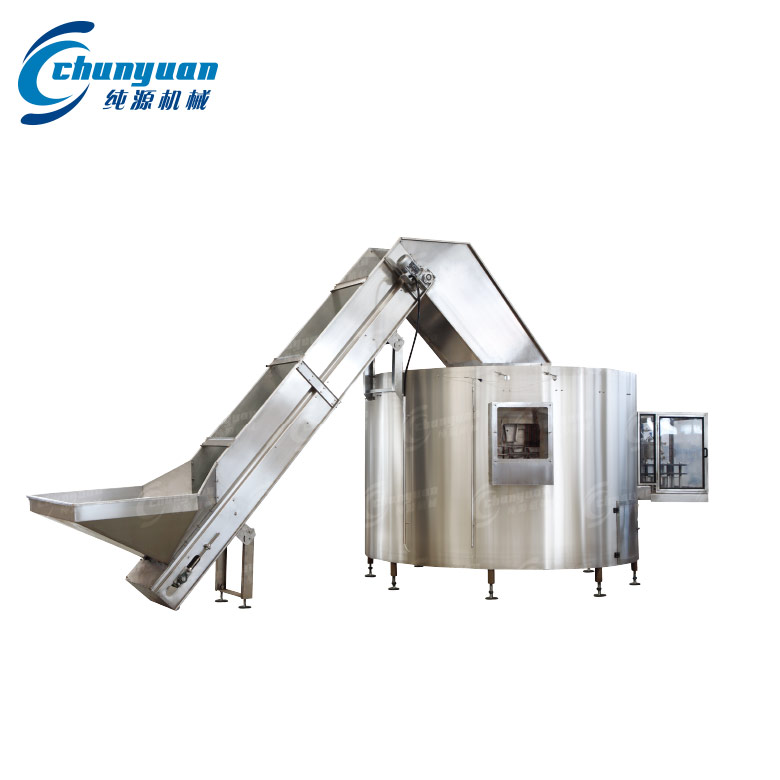 純源機(jī)械廠家專業(yè)供應(yīng)的全自動理瓶機(jī)可用于無序聚酯瓶的整理,將散亂無章的瓶子經(jīng)由提升機(jī)送進(jìn)理瓶機(jī)存瓶圈內(nèi),靠轉(zhuǎn)盤的推力,瓶進(jìn)入瓶格內(nèi)自行定位。瓶子通過理瓶機(jī)翻轉(zhuǎn)裝置和氣流的作用,瓶被整理成瓶口向上直立,并經(jīng)風(fēng)送式輸瓶系統(tǒng)輸出進(jìn)入下道工序。