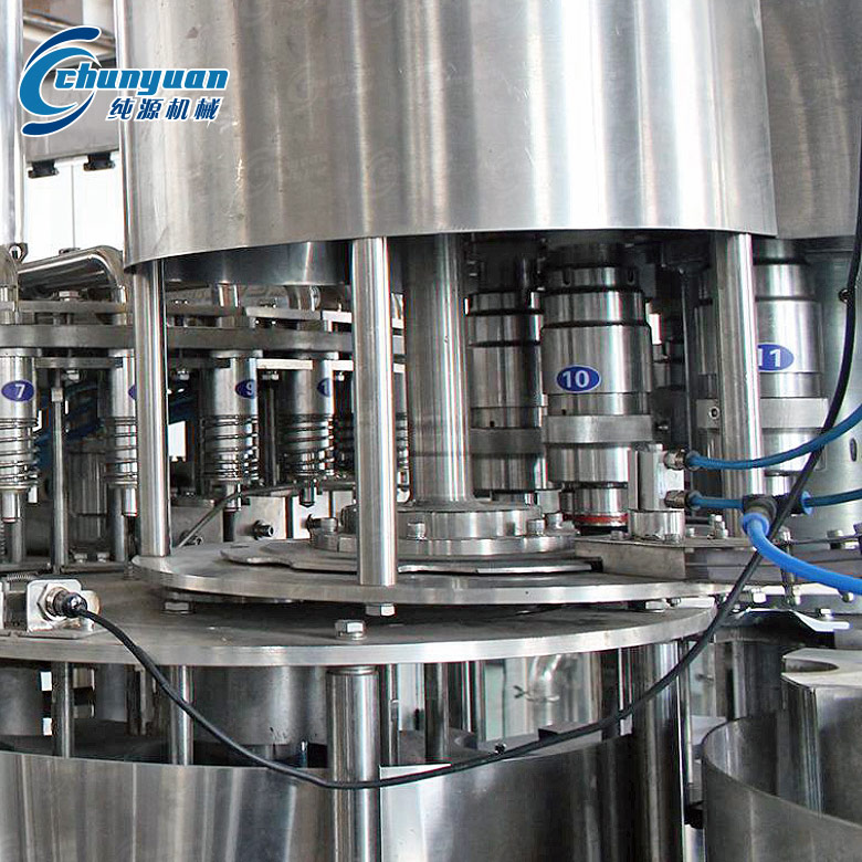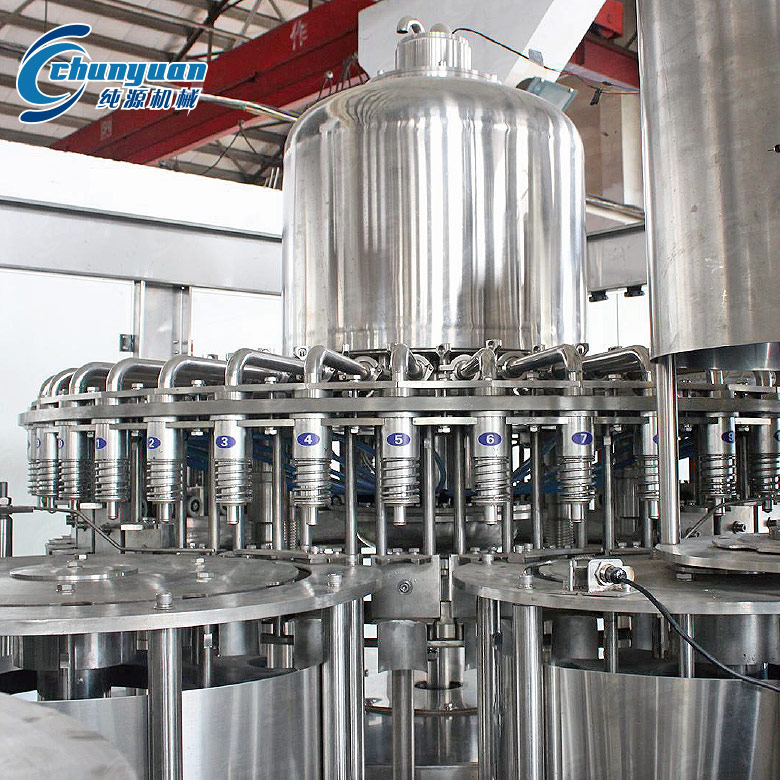 RCGF系列三合一果汁熱灌裝機械集沖洗、灌裝、封蓋于一體,是純源機械以引進、消化、吸收國外先進技術為基礎,創(chuàng)新研制而成的灌裝設備,果汁熱灌裝機械主要用于果汁/橙汁/酵素果蔬汁/能量飲料等飲品的灌裝與包裝。果汁灌裝機操作安全,工作可靠,維護方便,是飲料廠的理想灌裝設備。
