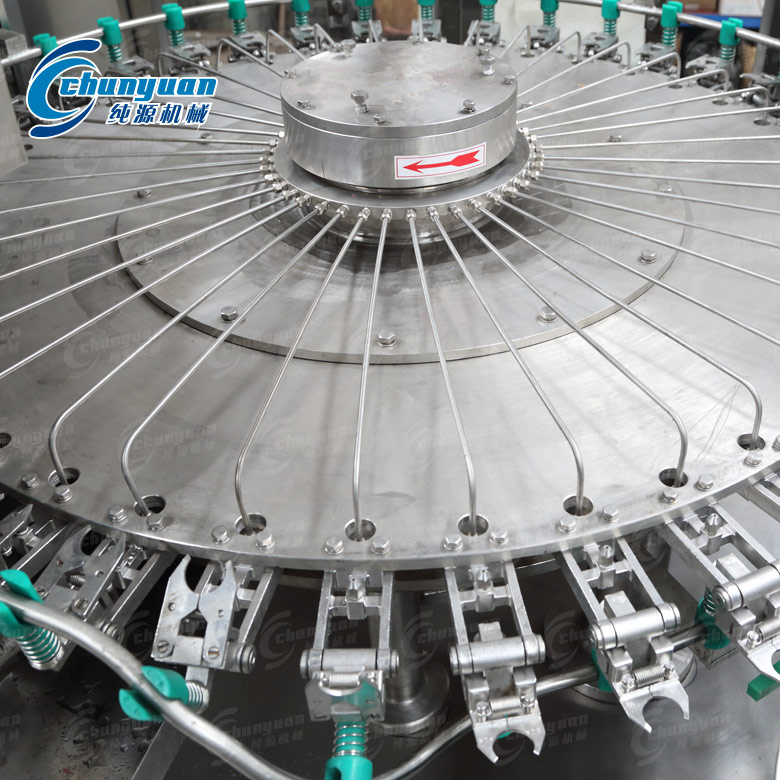 蘇打水灌裝設(shè)備清洗部分:主要用于飲料、水等產(chǎn)品的塑料瓶沖洗之用。全新的不銹鋼夾鉗,結(jié)構(gòu)簡單,調(diào)整方便;與瓶口接觸面積少,有效避免對瓶口的二次污染。