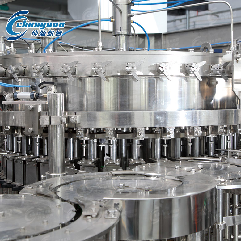 碳酸飲料等壓灌裝機(jī)主要用于碳酸飲料、含汽飲料的灌裝作業(yè),適用于生產(chǎn)350ml、500ml、1L、1.5L等容量的PET瓶含氣飲料、碳酸飲料的灌裝,如可樂、雪碧、含氣蘇打水、鹽汽水等含有二氧化碳?xì)怏w的飲料。飲料灌裝機(jī)將沖洗、灌裝、旋蓋三個(gè)功能組合在一個(gè)機(jī)體上,全過程實(shí)現(xiàn)自動(dòng)化。各部分的適用瓶型調(diào)整輕松自如,簡(jiǎn)便快捷。灌裝方式采用了新型的微負(fù)壓灌裝,穩(wěn)定可靠,所以與相同規(guī)格的灌裝機(jī)相比,等壓灌裝設(shè)備的作用更大。