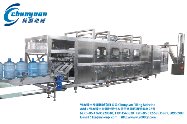 張家港市純?cè)礄C(jī)械研發(fā)制造的CYT-300系列桶裝水灌裝設(shè)備集自動(dòng)洗瓶、自動(dòng)上瓶、灌裝、套蓋、壓蓋、成品送出于一體。桶裝水灌裝設(shè)備適用于灌裝3加侖、5加侖水桶的全.............